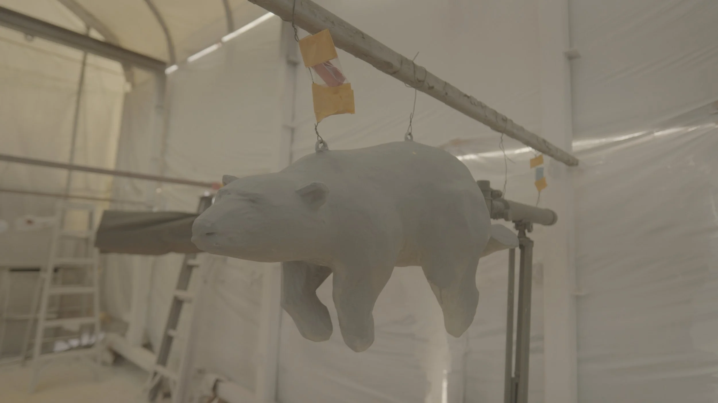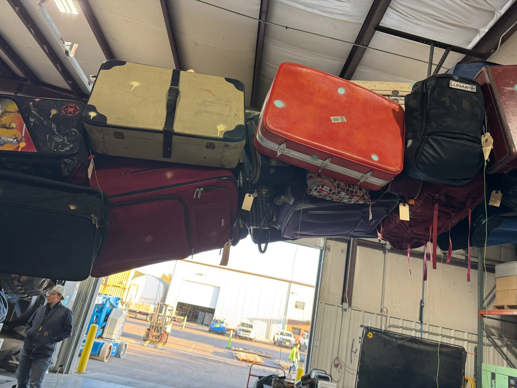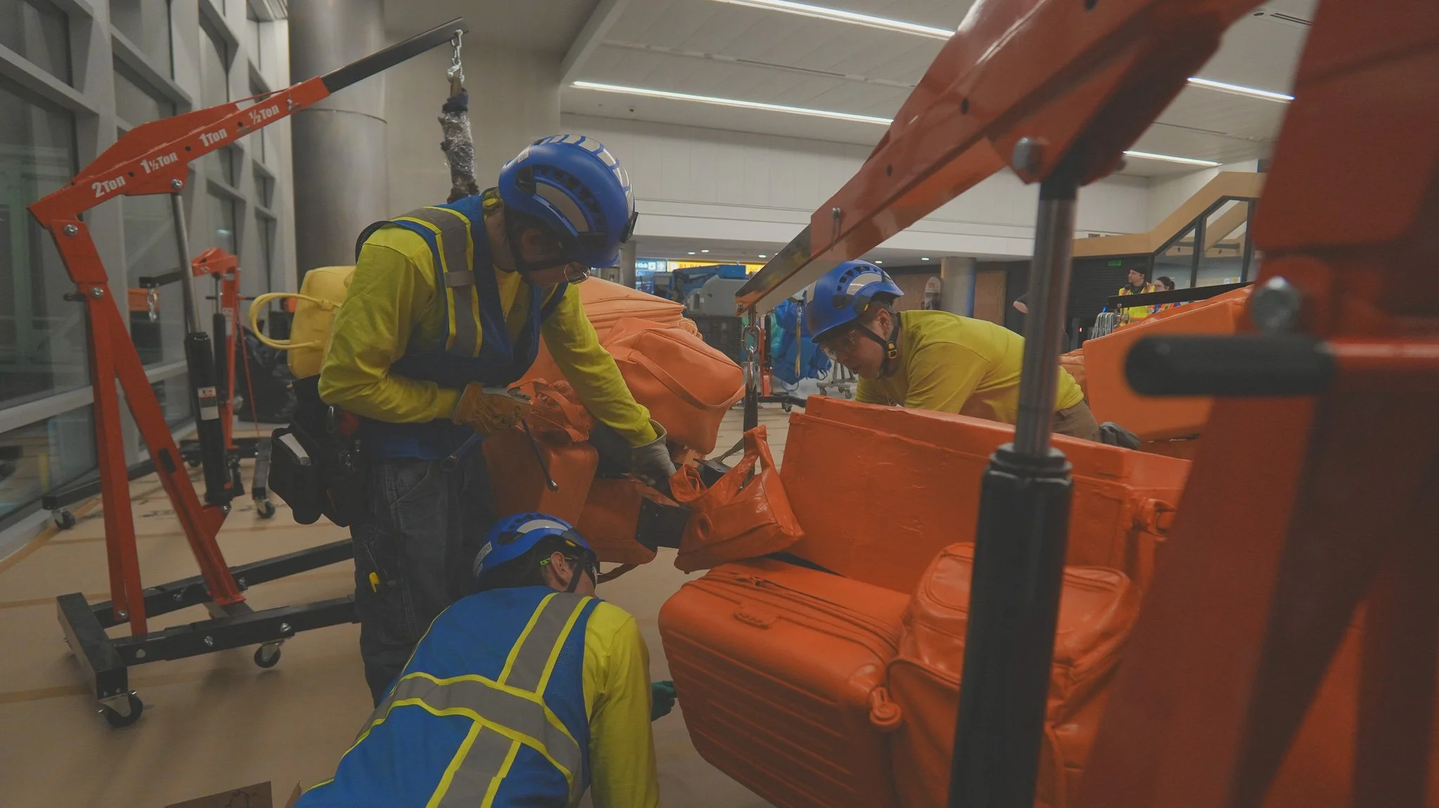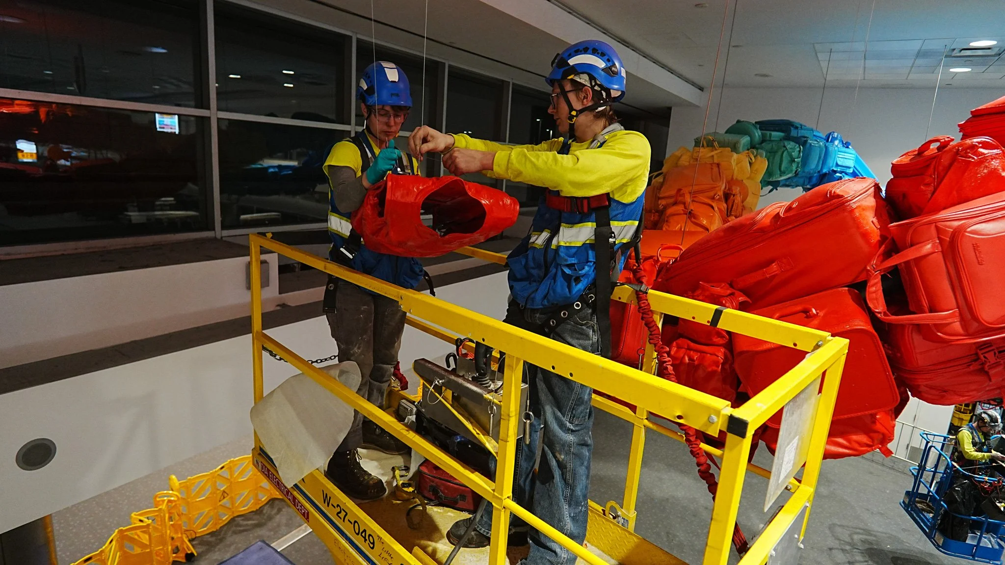 Delivery of the sculpture occurred by fork-lifting the sculpture through a window in Concourse B. Each section was then escorted over a quarter mile to it’s permanent location were it was reassembled.
